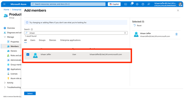 1.2 Assign the group to your LiteLLM Enterprise App​